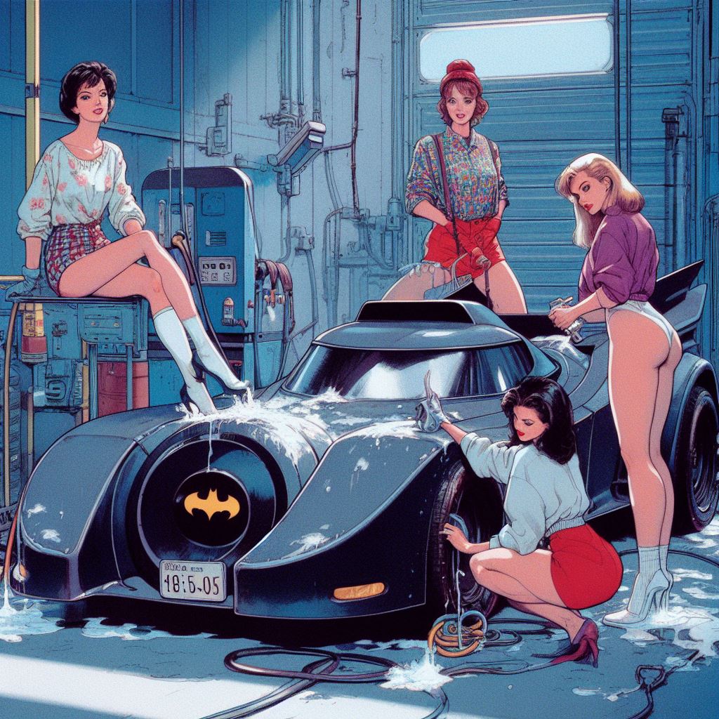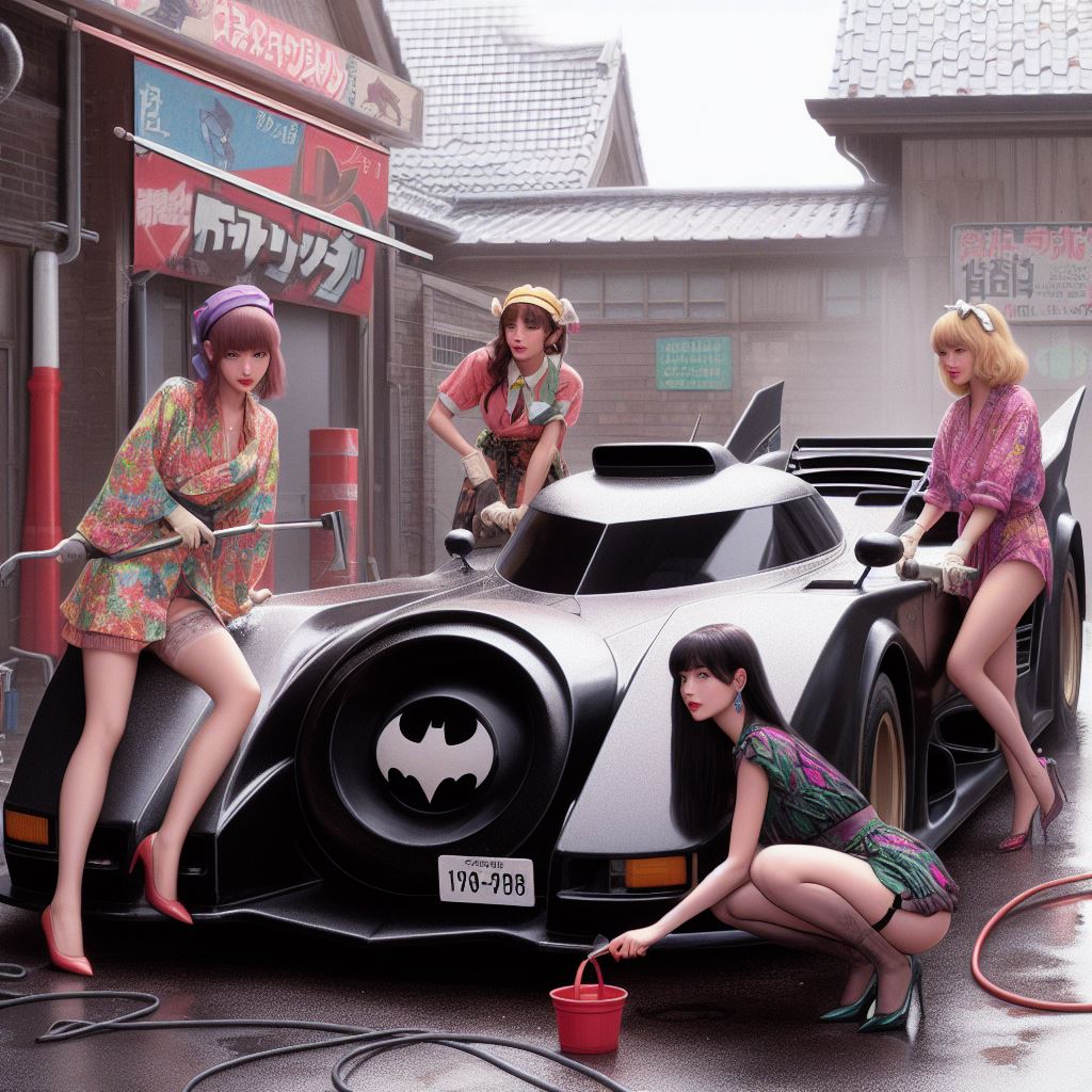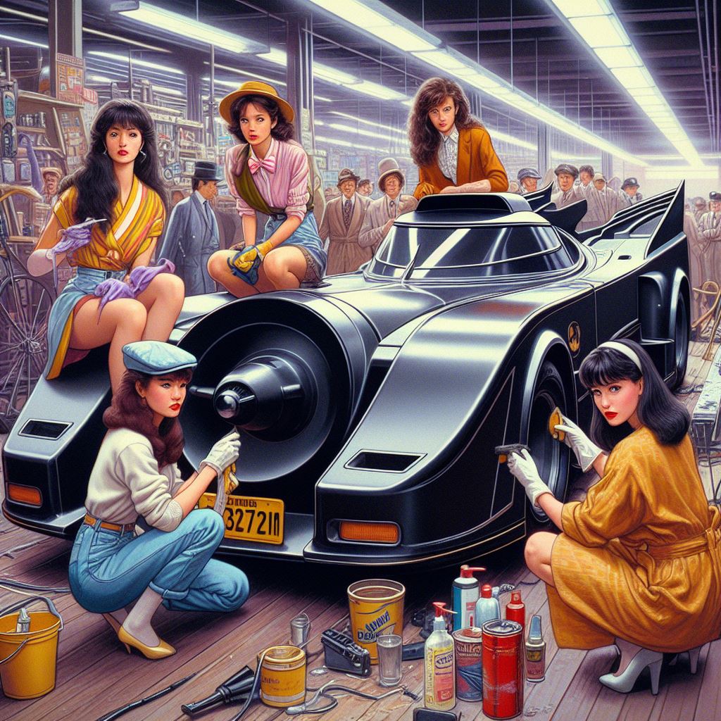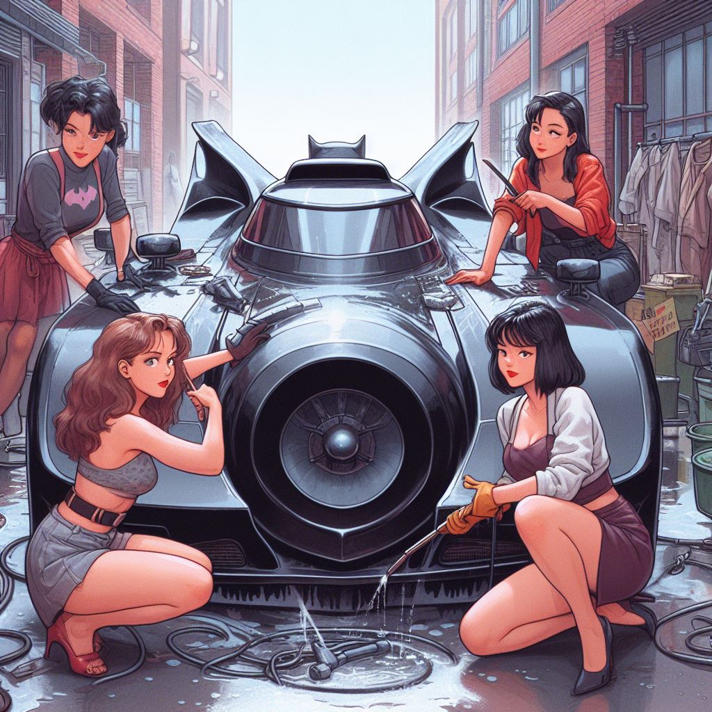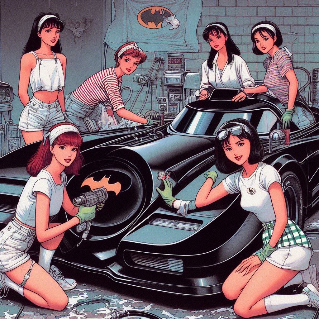 Chicks aside, it’s amazing how AI puts extra bat motifs on the batmobile that doesn’t exist on original car.