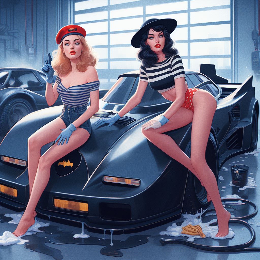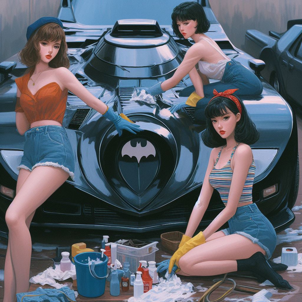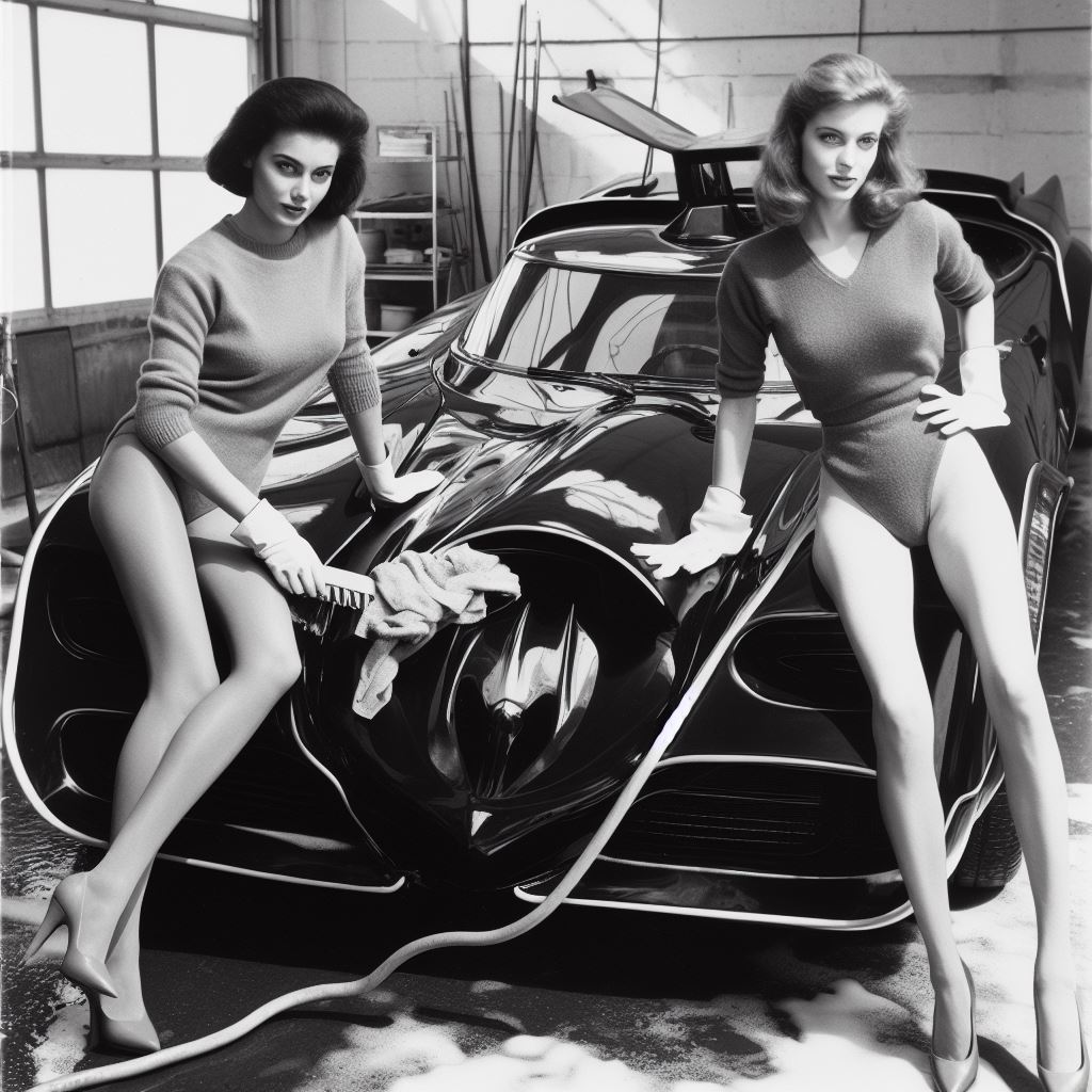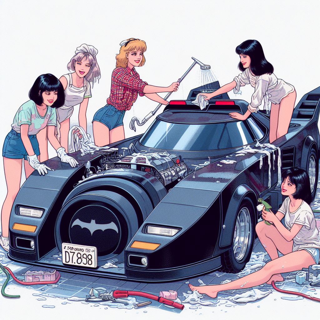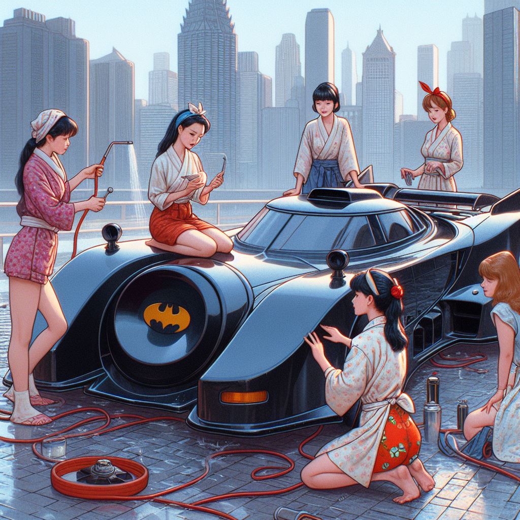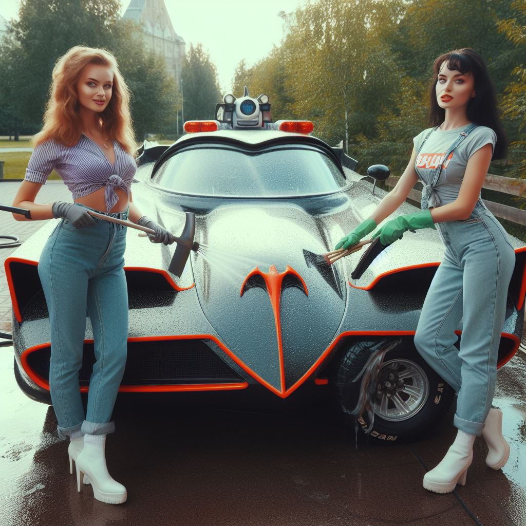 Chicks aside, it’s amazing how AI puts extra bat motifs on the batmobile that doesn’t exist on original car.