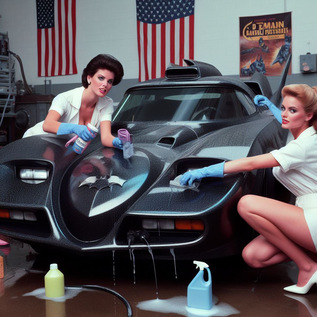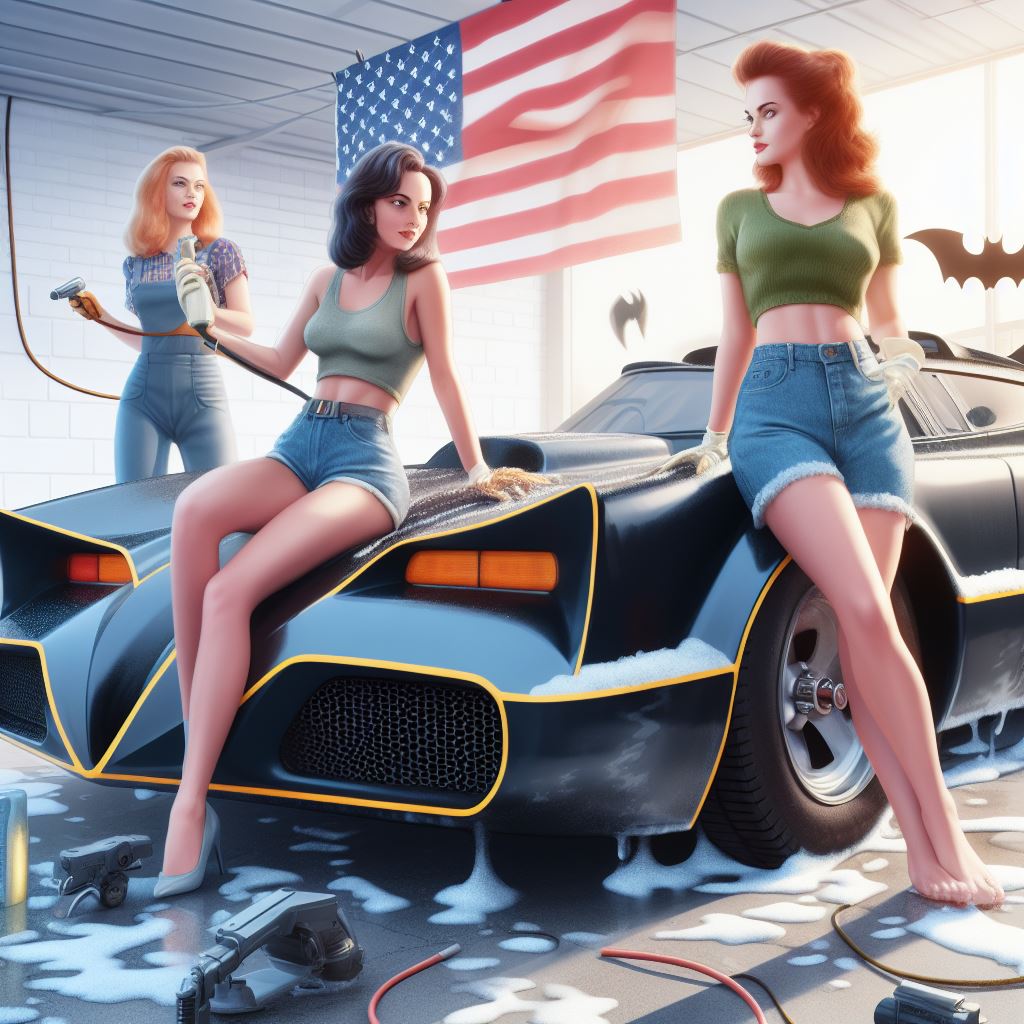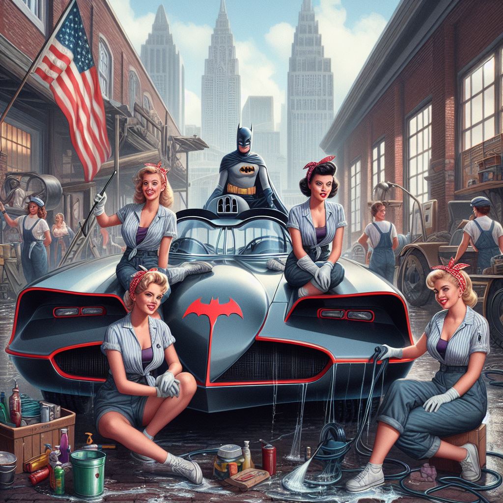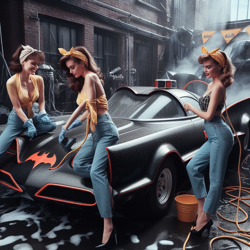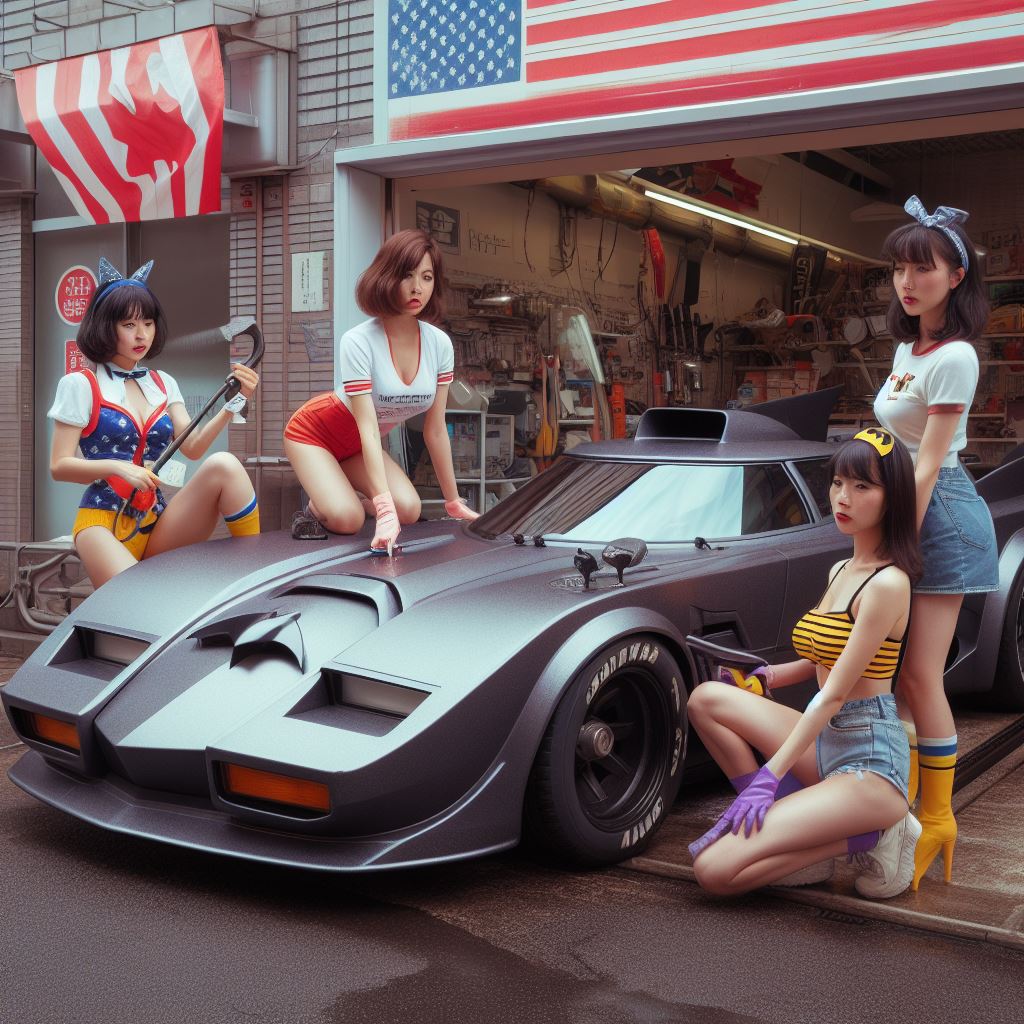 Chicks aside, it’s amazing how AI puts extra bat motifs on the batmobile that doesn’t exist on original car.