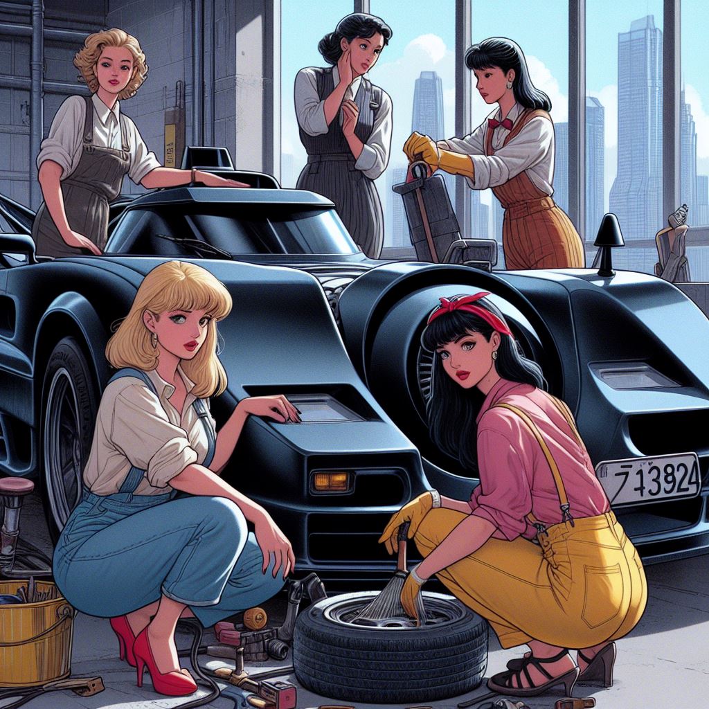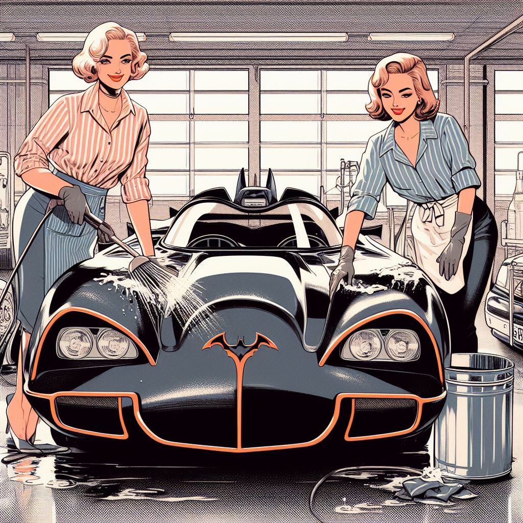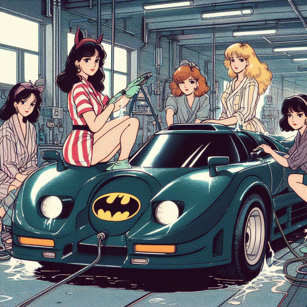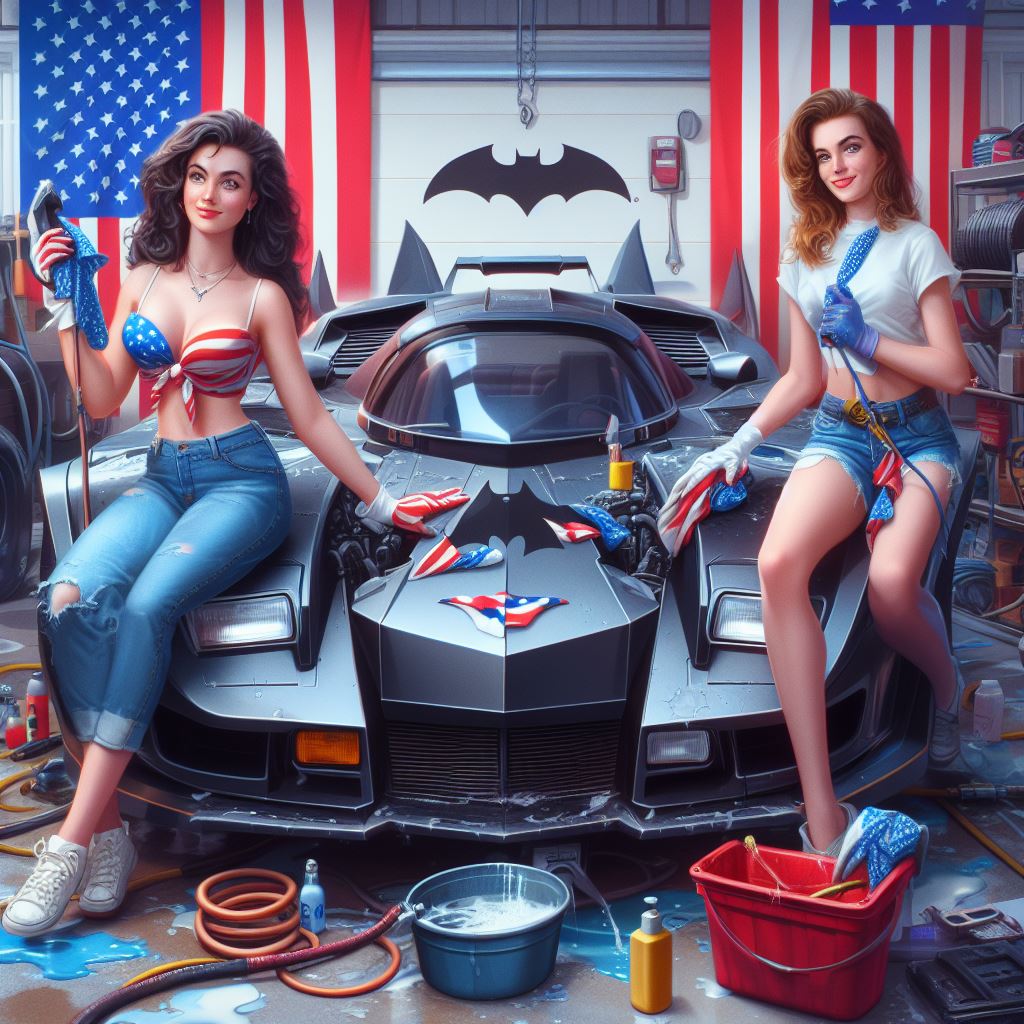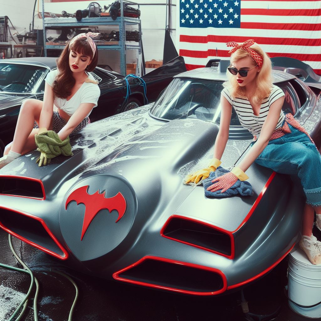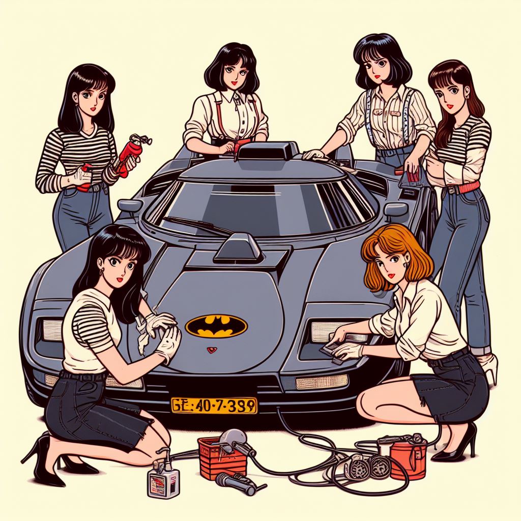 Chicks aside, it’s amazing how AI puts extra bat motifs on the batmobile that doesn’t exist on original car.