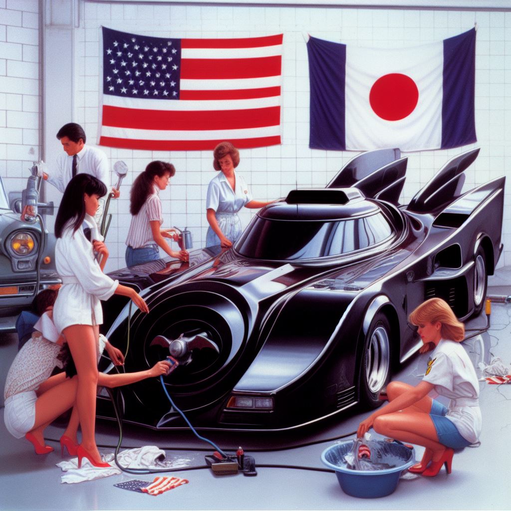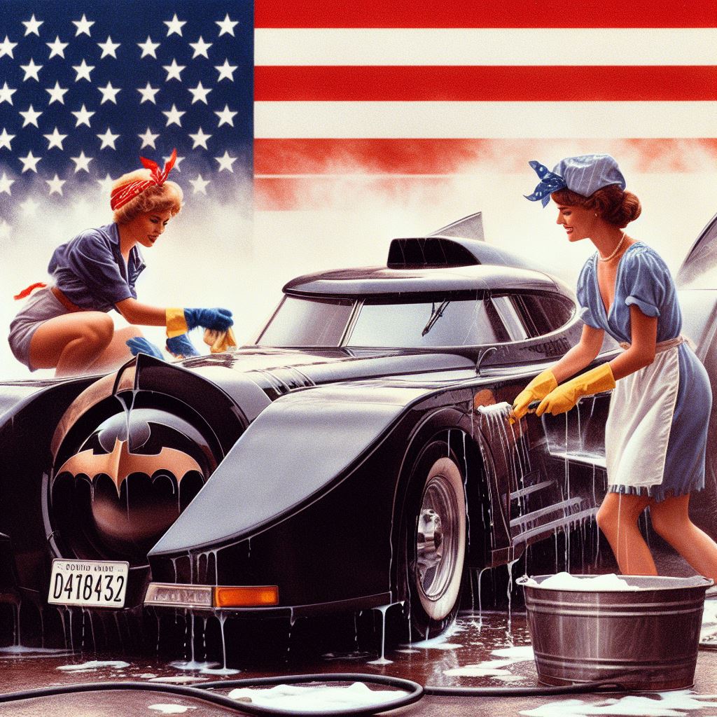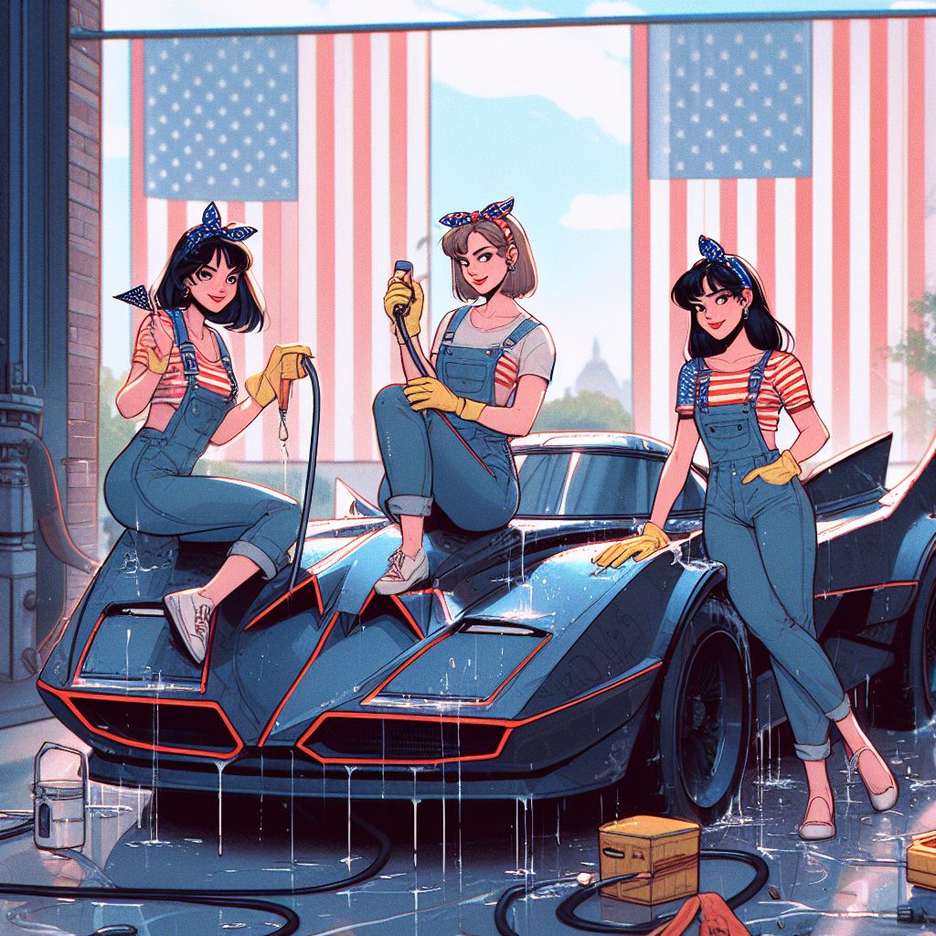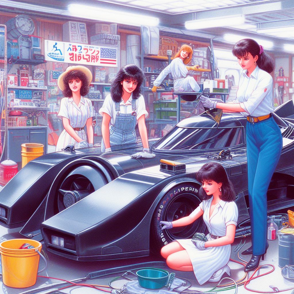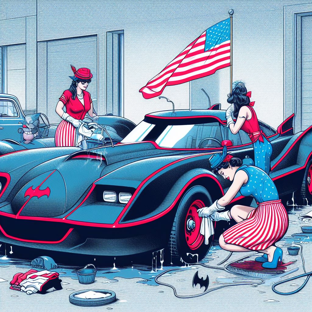 Chicks aside, it’s amazing how AI puts extra bat motifs on the batmobile that doesn’t exist on original car.