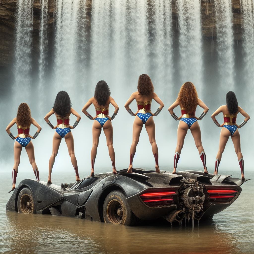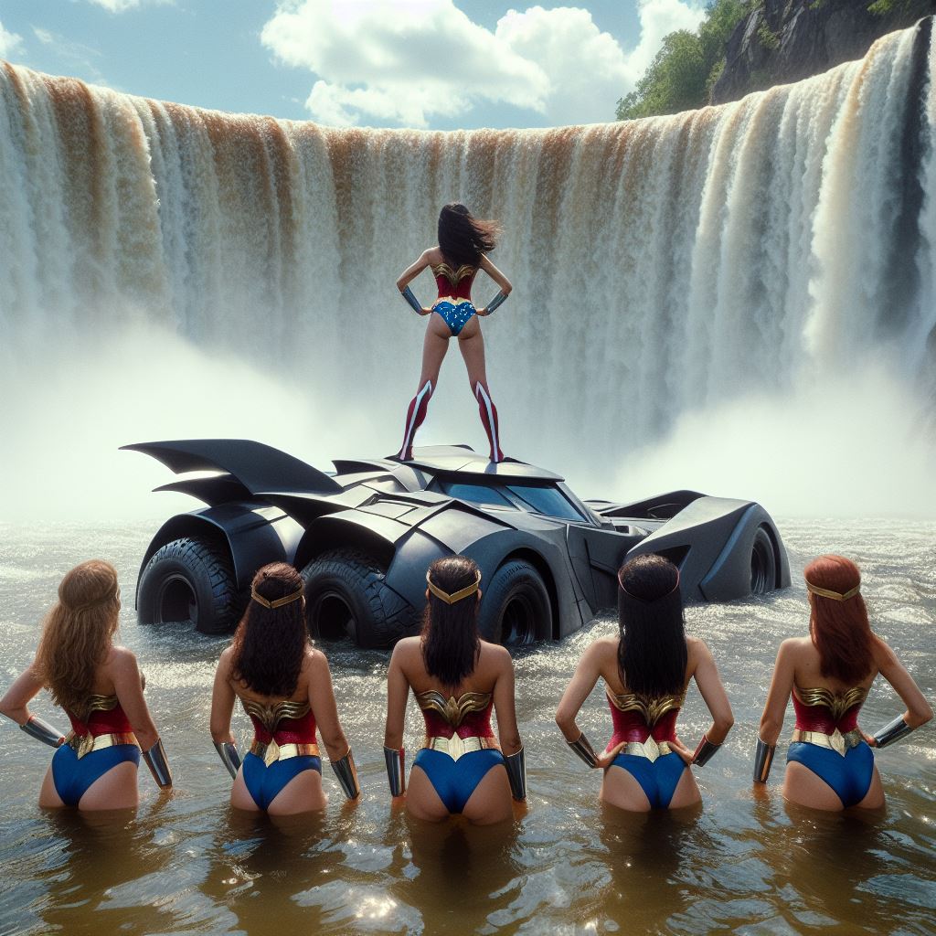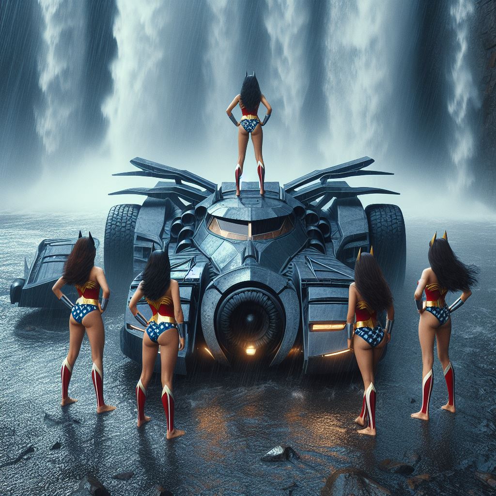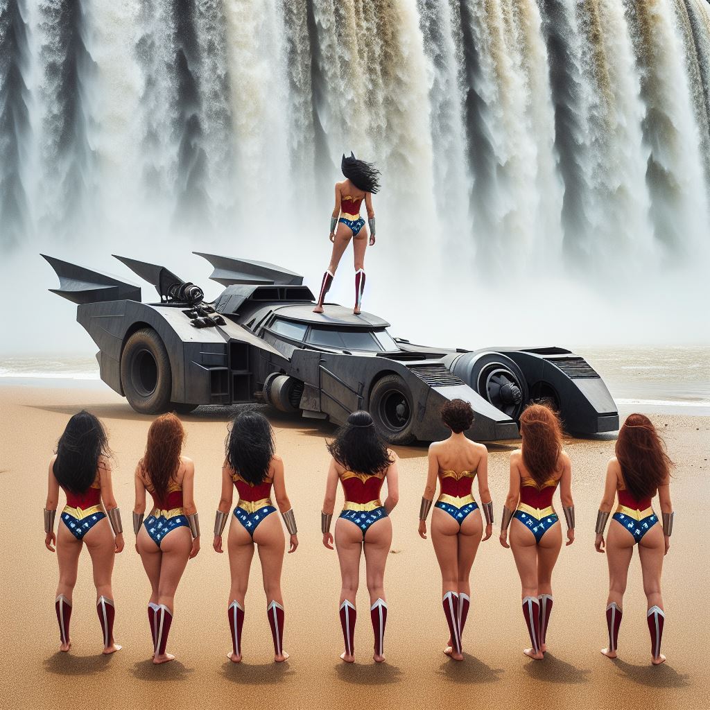 More perfection. Gotta love the extra metal hinge or whatever sticking out of the batmobile so the leftmost Wonder Woman can rest her foot.