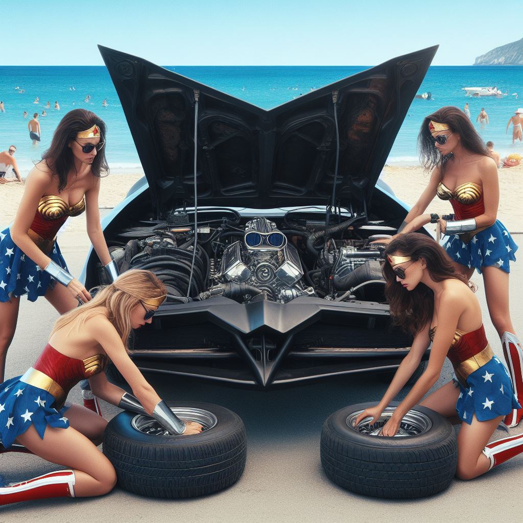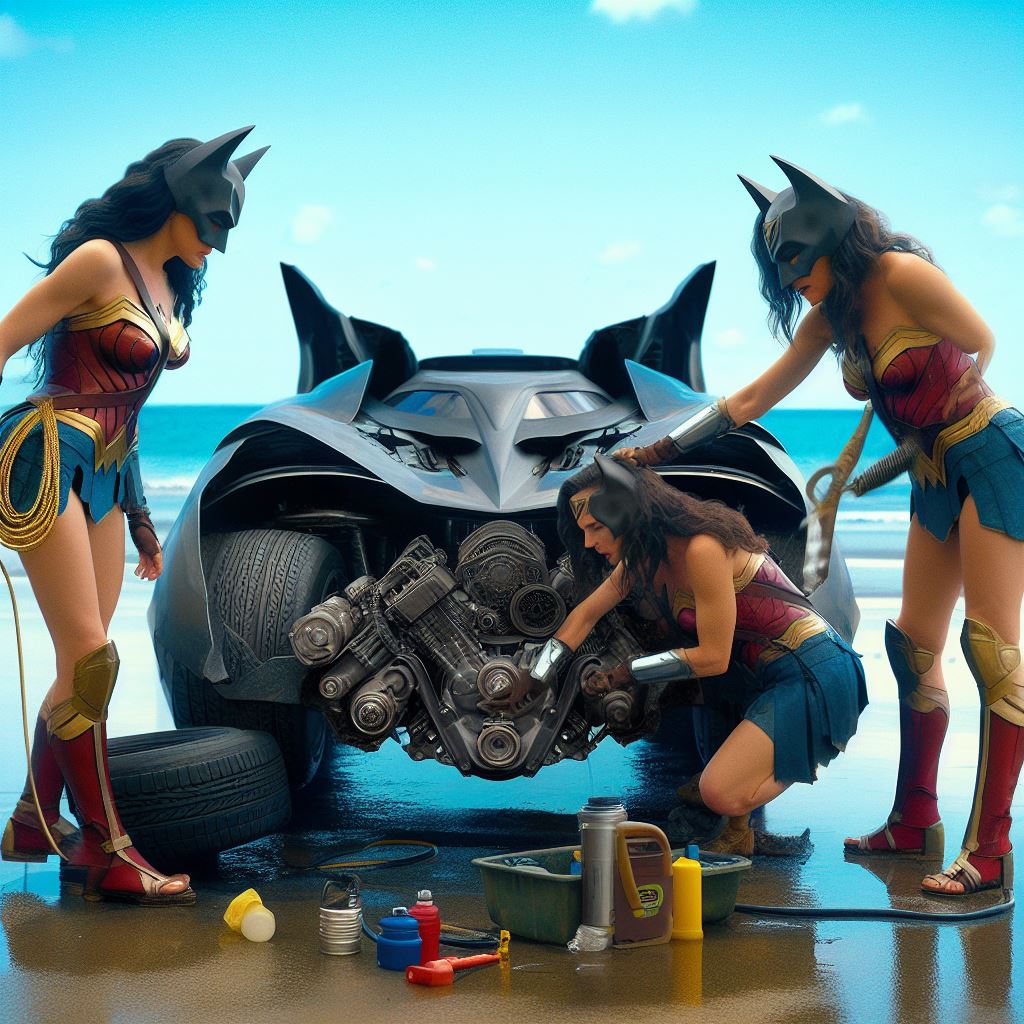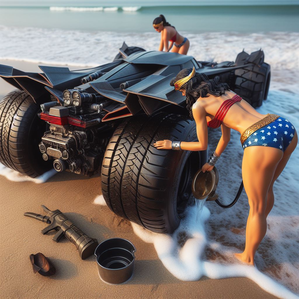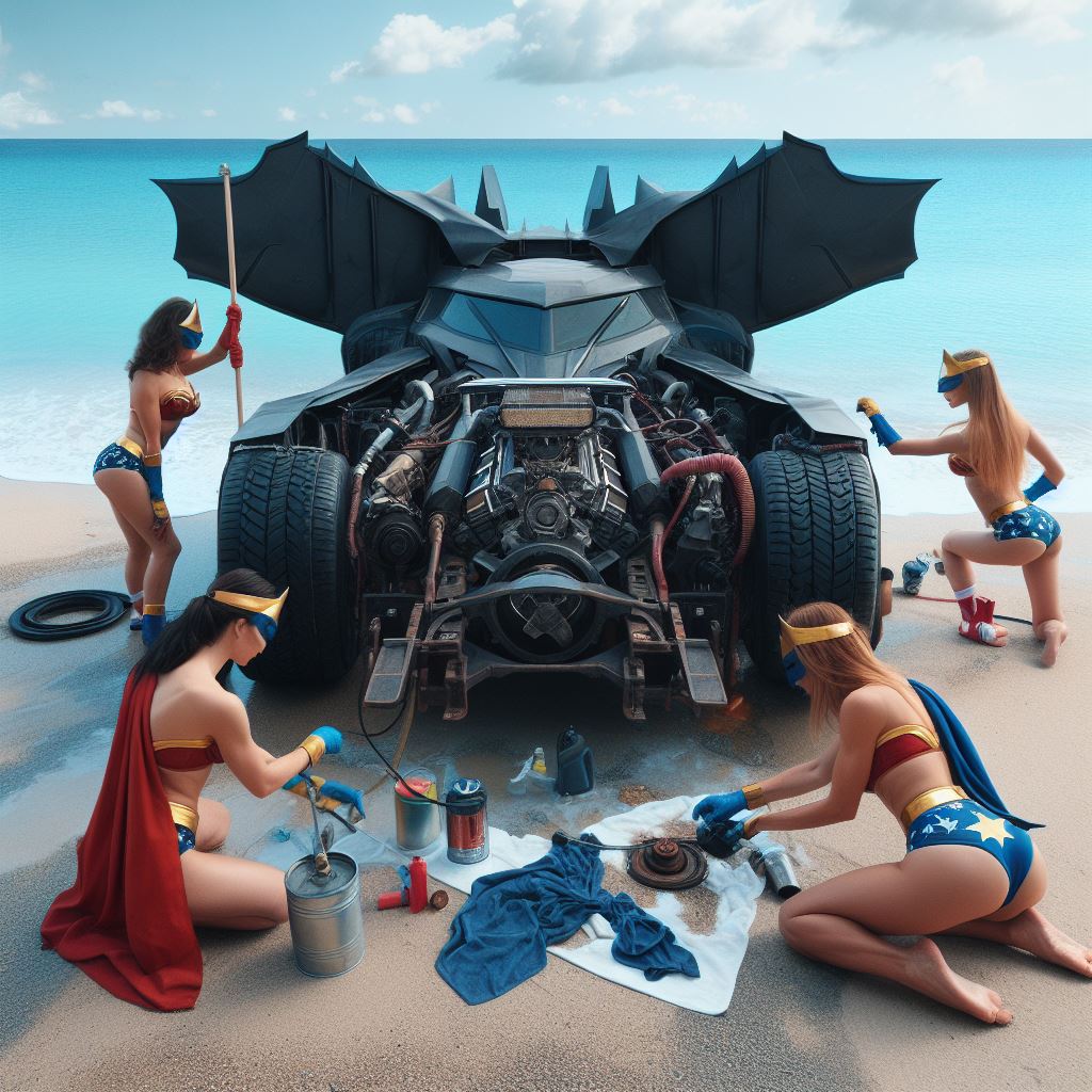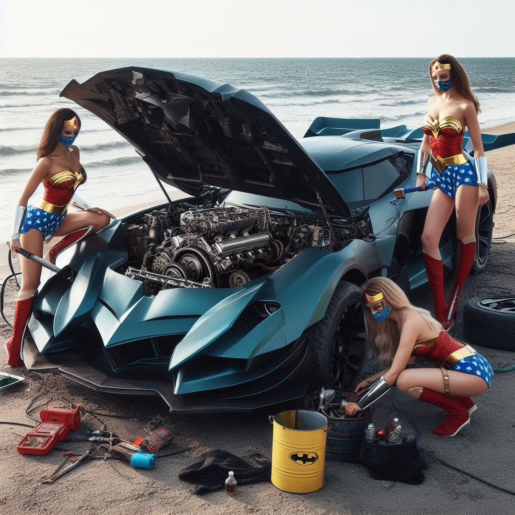 For instance I prompt “washing batmobile” but I think it sometimes interprets as Wonder Woman washing herself so it stops generating. Also I ask for batmobile to have open trunk but it stops bc I think it thinks I’m asking about Wonder Woman’s trunk.