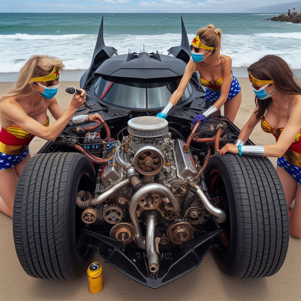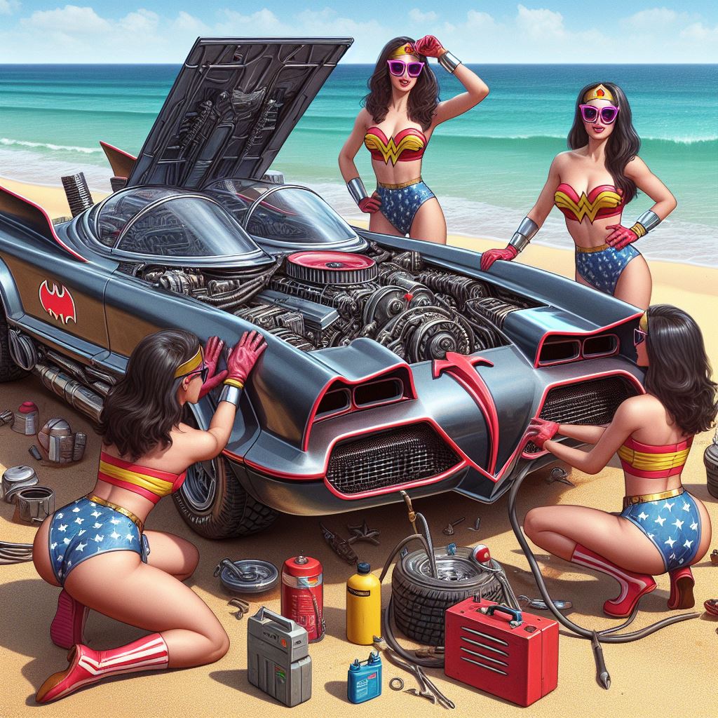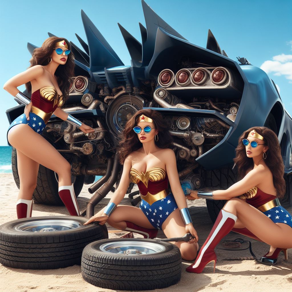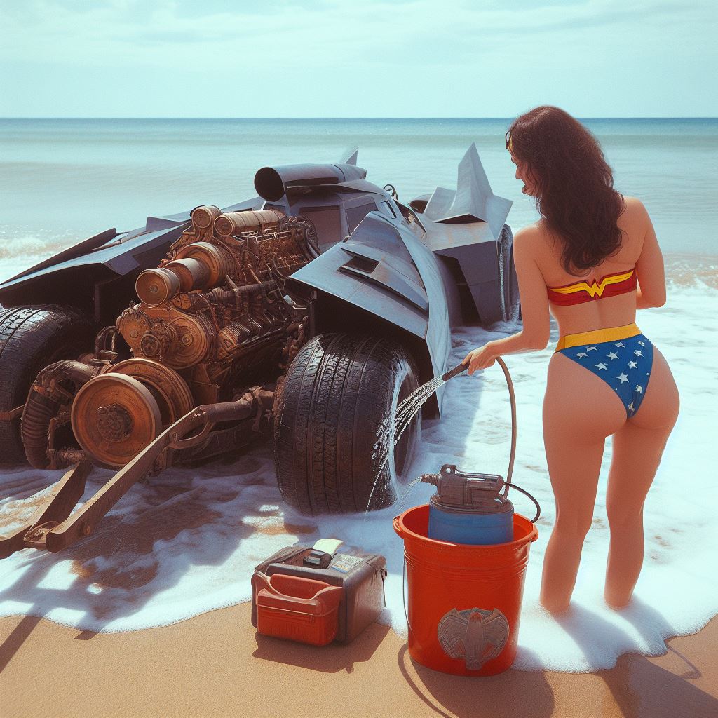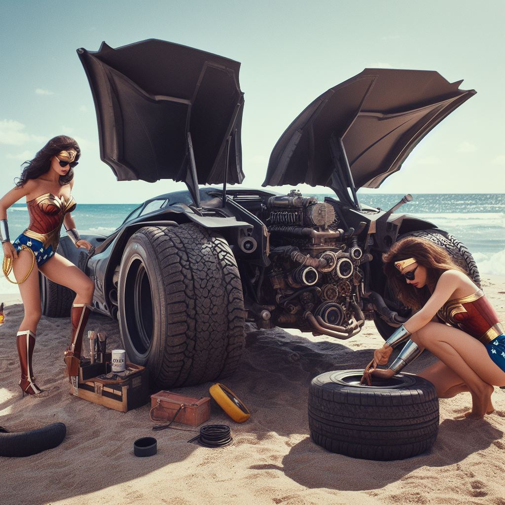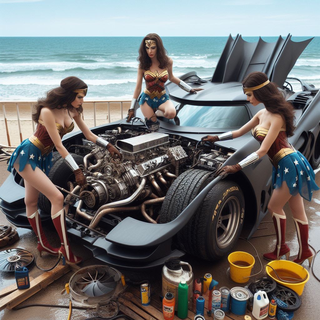 For instance I prompt “washing batmobile” but I think it sometimes interprets as Wonder Woman washing herself so it stops generating. Also I ask for batmobile to have open trunk but it stops bc I think it thinks I’m asking about Wonder Woman’s trunk.