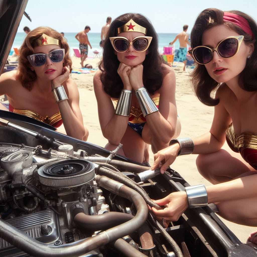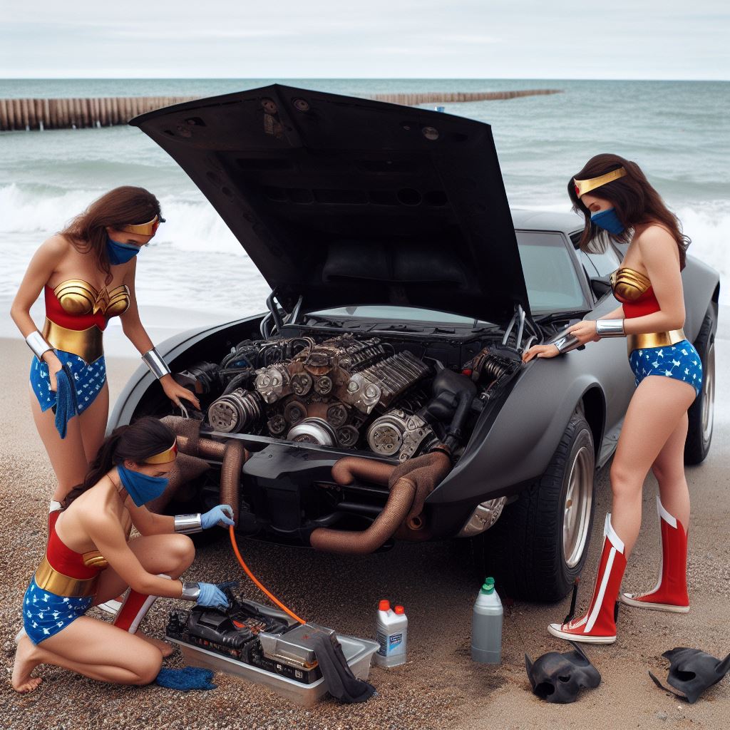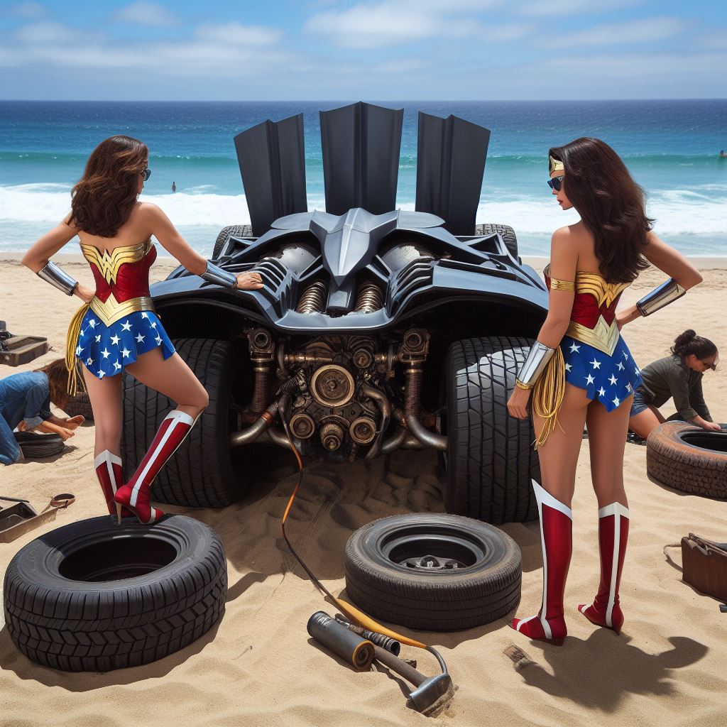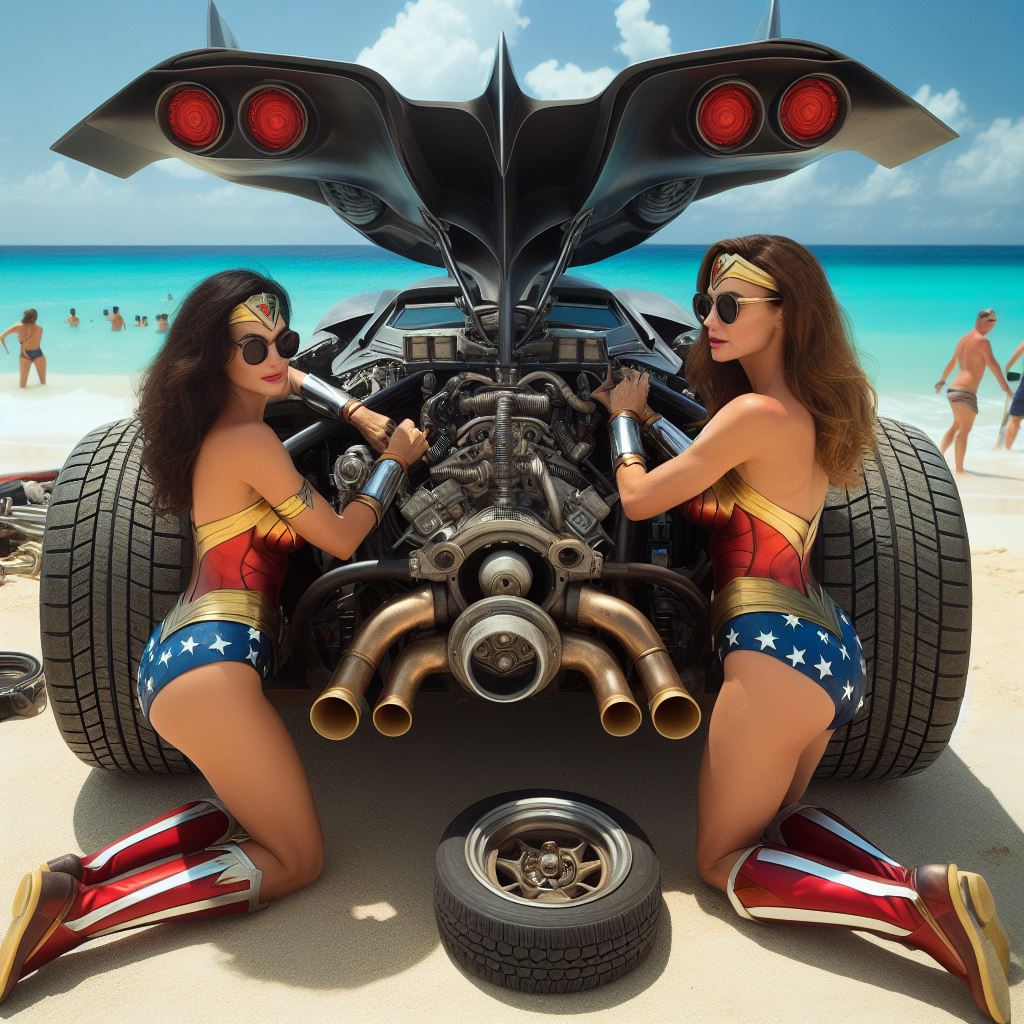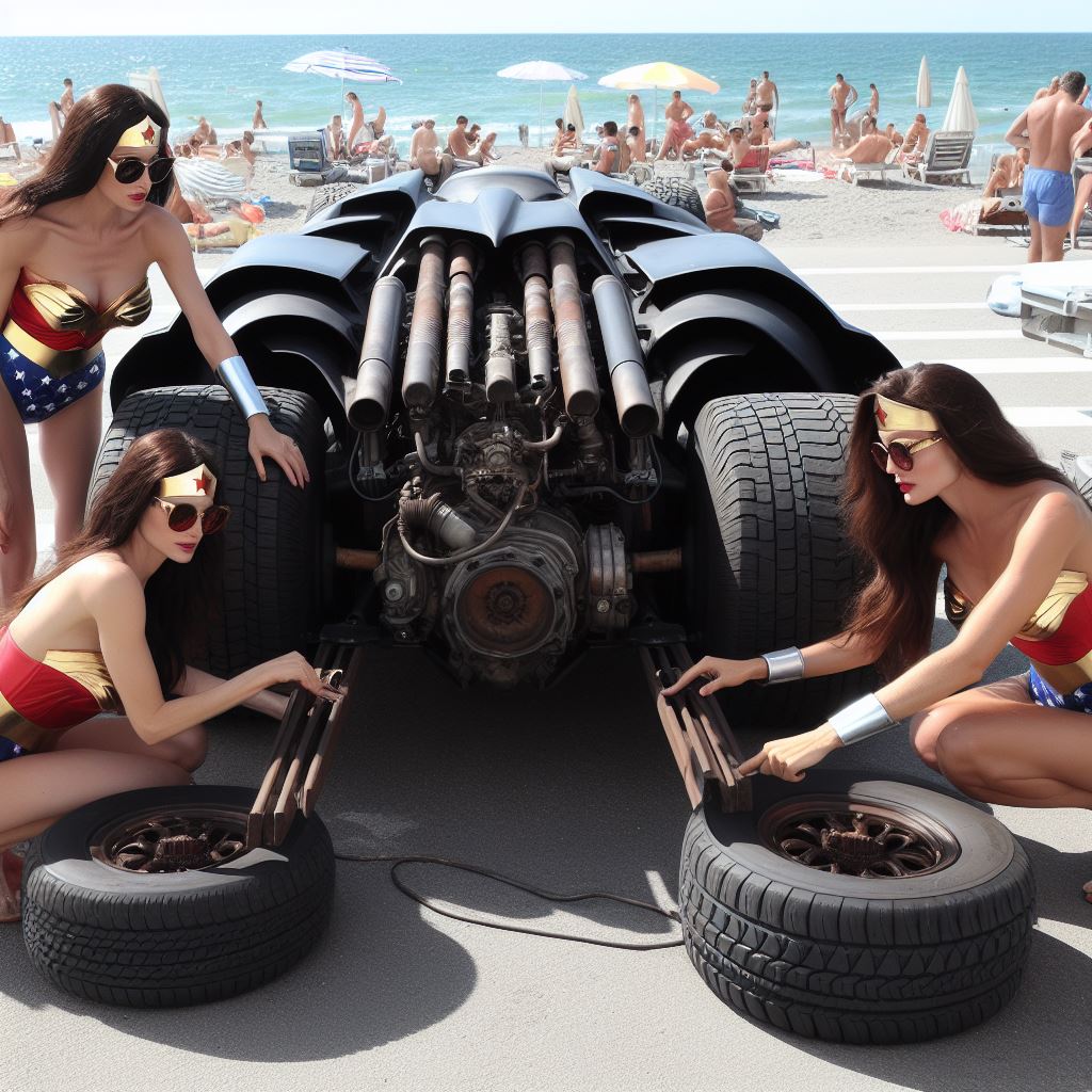 For instance I prompt “washing batmobile” but I think it sometimes interprets as Wonder Woman washing herself so it stops generating. Also I ask for batmobile to have open trunk but it stops bc I think it thinks I’m asking about Wonder Woman’s trunk.
